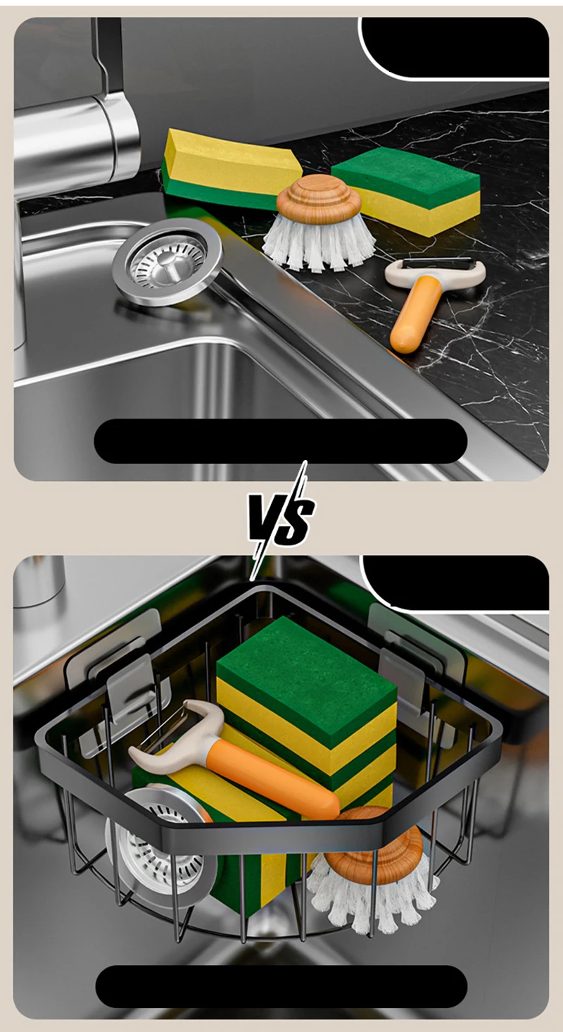Versátil: Embora seja ideal para a cozinha (esponjas, talheres), também pode ser usado na casa de banho para organizar sabonetes e acessórios de lavagem.