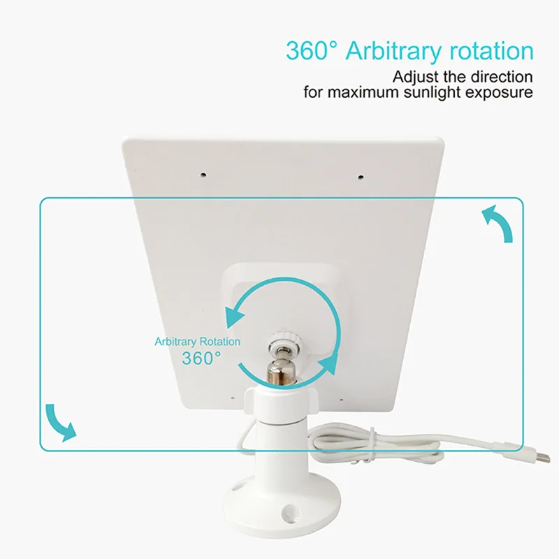 Livre-se da preocupação de carregar ou trocar baterias das suas câmaras de vigilância e campainhas inteligentes! Este Painel Solar de 10W (5V) oferece uma fonte de energia contínua e gratuita, mantendo os seus dispositivos de segurança sempre ativos.