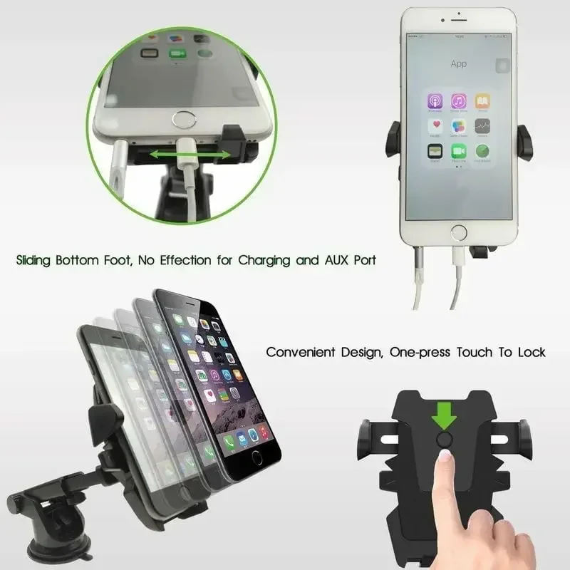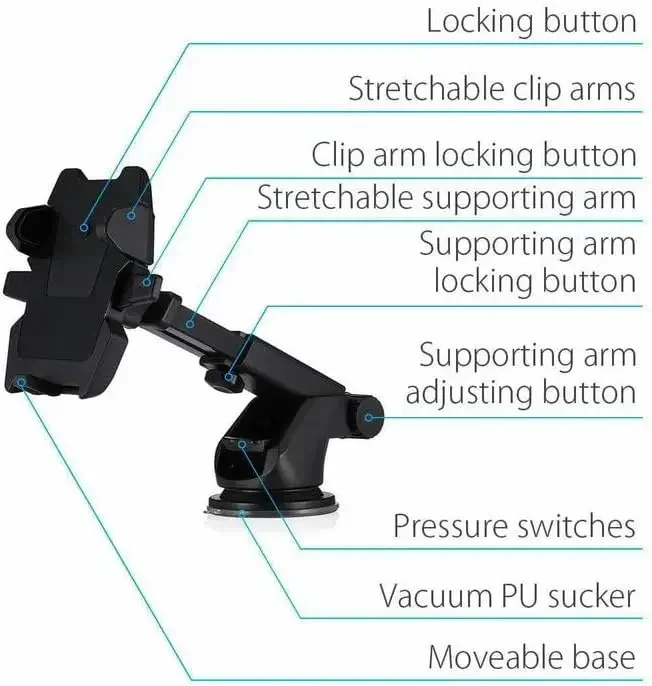 • Fixação Ultra-Forte e Reutilizável: Utiliza uma Ventosa Adesiva Reutilizável (Sticky Suction Cup) que garante uma fixação firme e segura no tablier ou no para-brisas. É fácil de limpar e reinstalar.