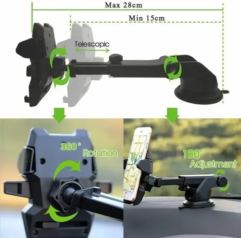 Suporte de Telemóvel para Carro 360° Universal (Braço Retrátil e Ventosa)