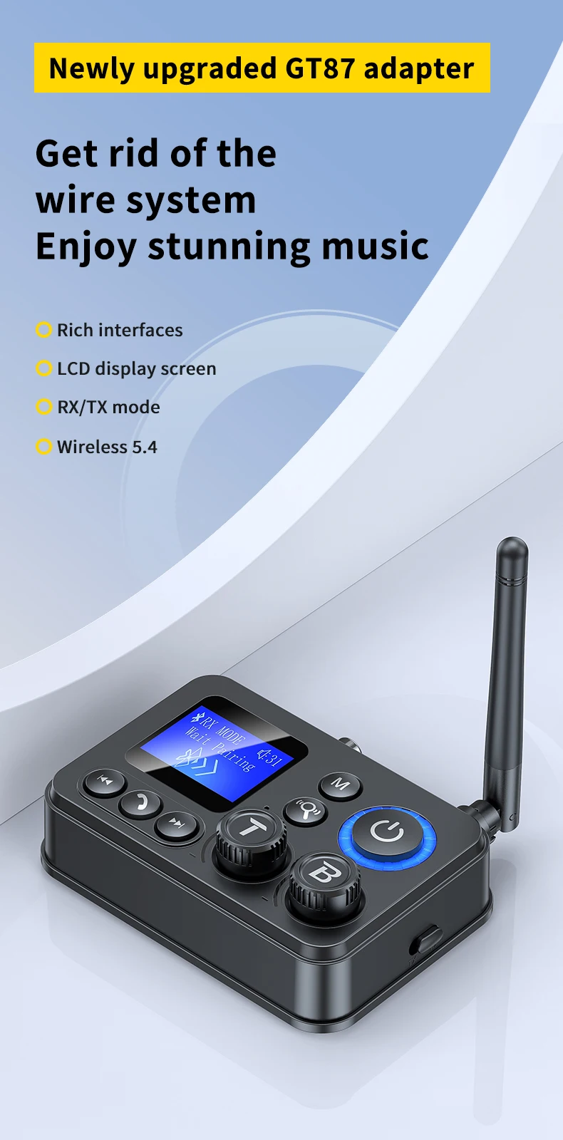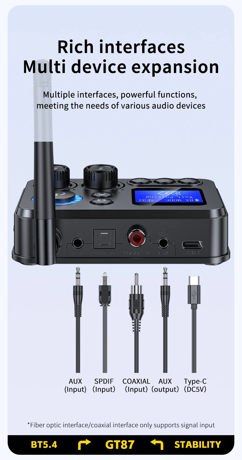 Transmissor/Recetor Bluetooth 5.4 GT87 (AUX/SPDIF/COAXIAL/TF)